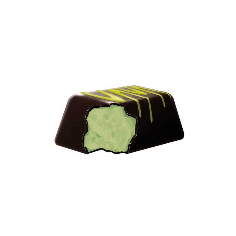 Espumas dulces con cobertura especial con grasa vegetal y leche y artículo de confitería de sucedáneo de chocolate con grasa vegetal y leche. Ingredientes: cobertura especial con grasa vegetal y leche (azúcar, aceites y grasas vegetales (palmiste totalmente hidrogenado), suero de leche en polvo, cacao desgrasado en polvo, leche en polvo, emulgente (lecitina de soja, E492), aromas); artículo de confitería de sucedáneo de chocolate con grasa vegetal y leche (azúcar, grasa vegetal (palmiste totalmente hidrogenado), leche en polvo, suero de leche en polvo, emulgente (lecitina de soja, E492), aromas, concentrado (espirulina), colorante (E100); jarabe de glucosa y fructosa, azúcar, gelatina, agua, humectante (E420), sal, aromas, colorantes (E100, E133). Puede contener trazas de frutos de cáscara.Cobertura especial con grasa vegetal y leche (azúcar, grasas vegetales (palmiste totalmente hidrogenado), suero de leche en polvo, cacao desgrasado en polvo, leche en polvo, emulgente (lecitina de soja, E492), aromas), jarabe de glucosa y fructosa, azúcar, grasa vegetal (palma), harina de trigo (gluten), aceite vegetal (girasol), agua, gelatina, humectante (E420), cacao desgrasado en polvo, leche en polvo, suero de leche en polvo, emulgentes (lecitina de soja, E471), aromas, colorantes (E100, E133).