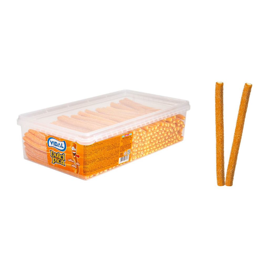Deliciosas tiras de gominola con sabor a melocotón y un recubrimiento pica irresistible. ¡Dulces por dentro y con un toque pica por fuera! 😋 Perfectas para los amantes de los sabores intensos y frutales.