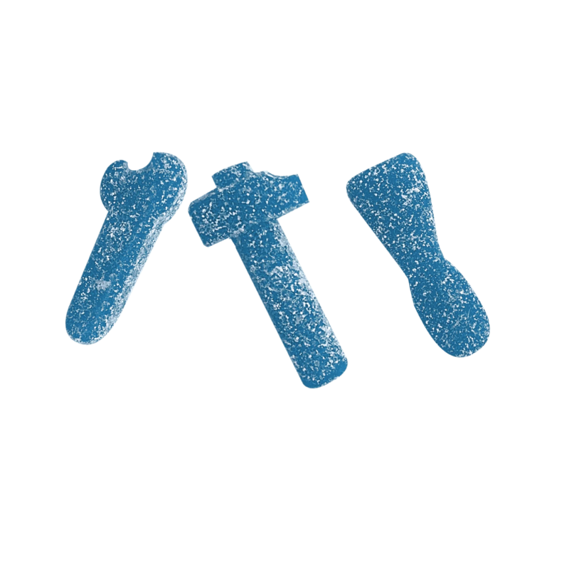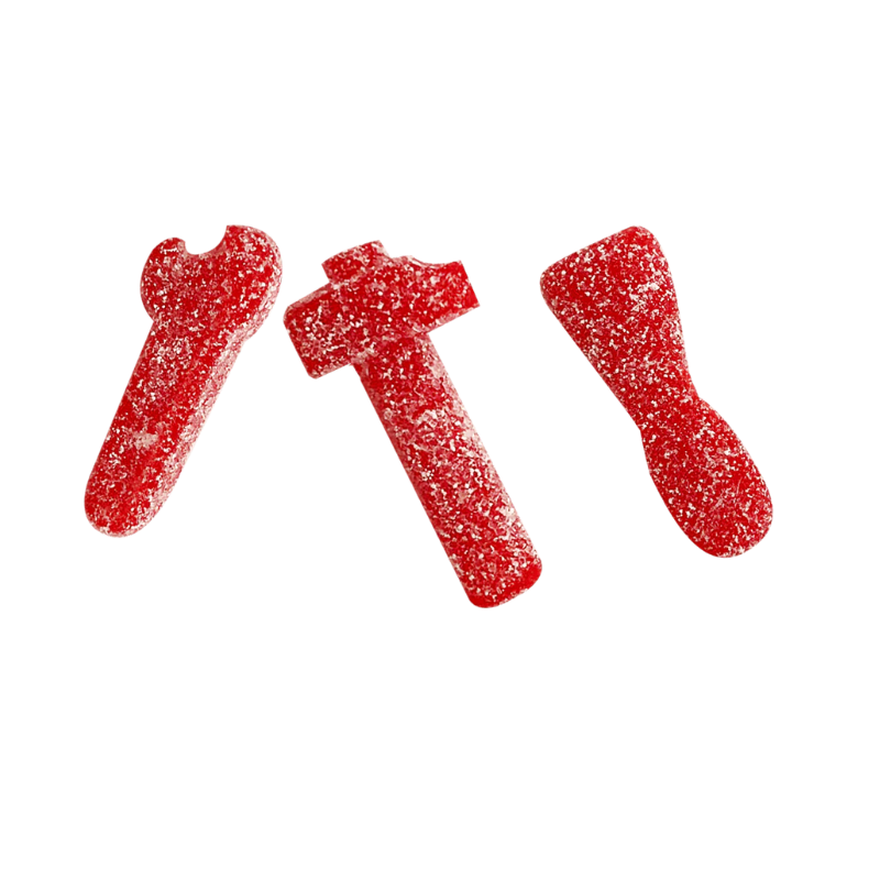 - Golosinas en forma de llaves y herramientas, cubiertas con un sabor ácido e intenso