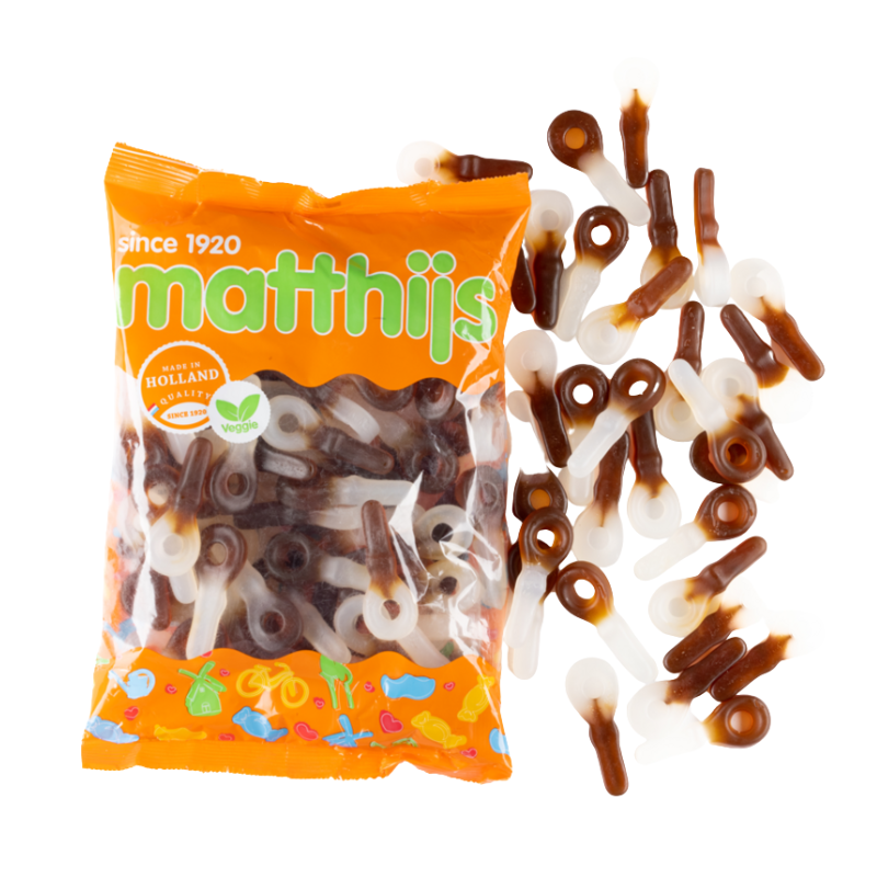 Disfruta de estas suaves y sabrosas llaves con sabor a cola, elaboradas por Matthijs, directamente desde Holanda 🇳🇱. Gominolas vegetarianas, con textura blandita y un toque clásico que nunca falla 🍬.